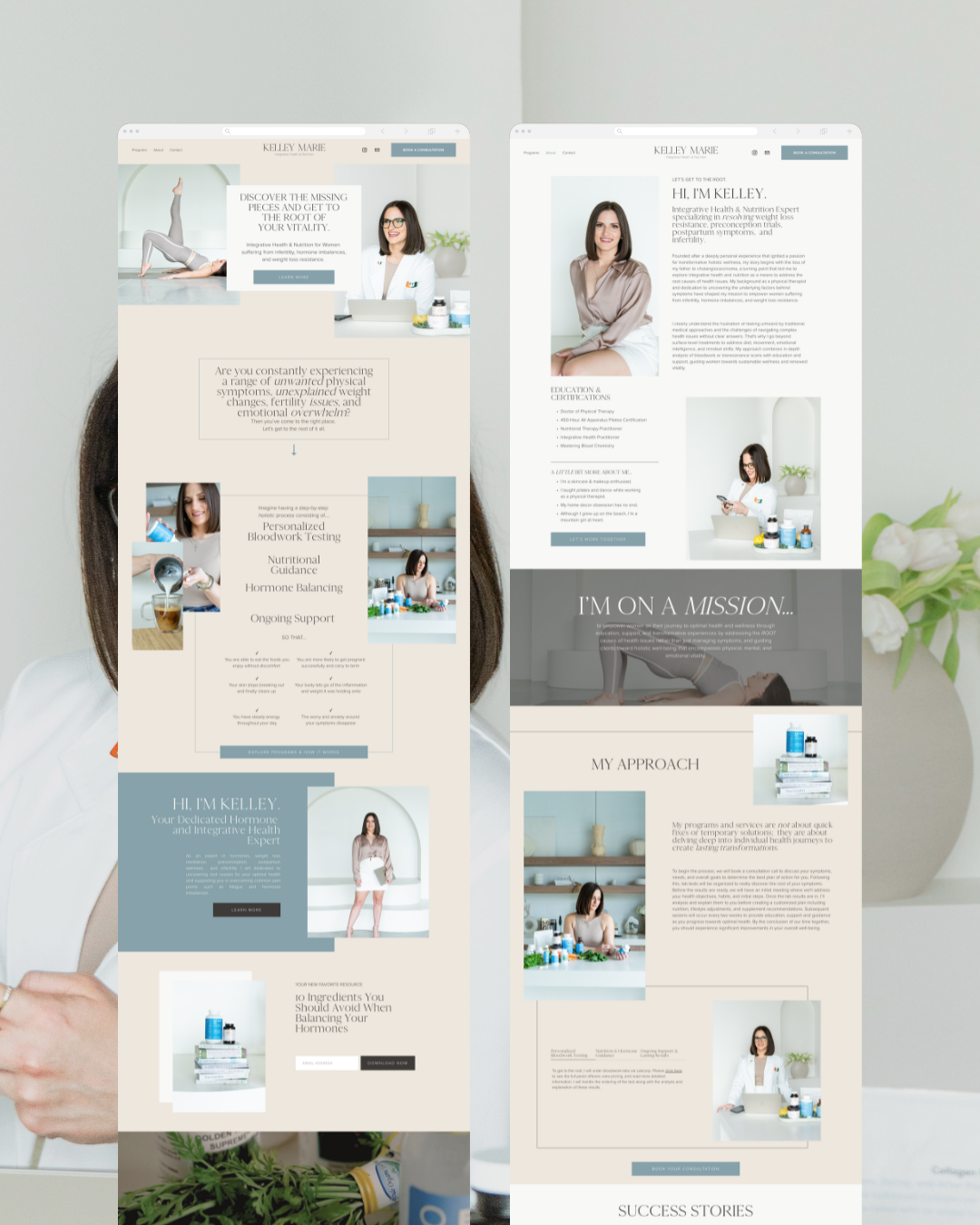 After witnessing the gaps in traditional healthcare through her father's battle with cancer, integrative health practitioner Kelley Marie knew she needed a brand that could bridge clinical expertise with compassionate, holistic care. She came to us seeking an identity that would position her as the trusted expert who helps women uncover the root causes of their health challenges.